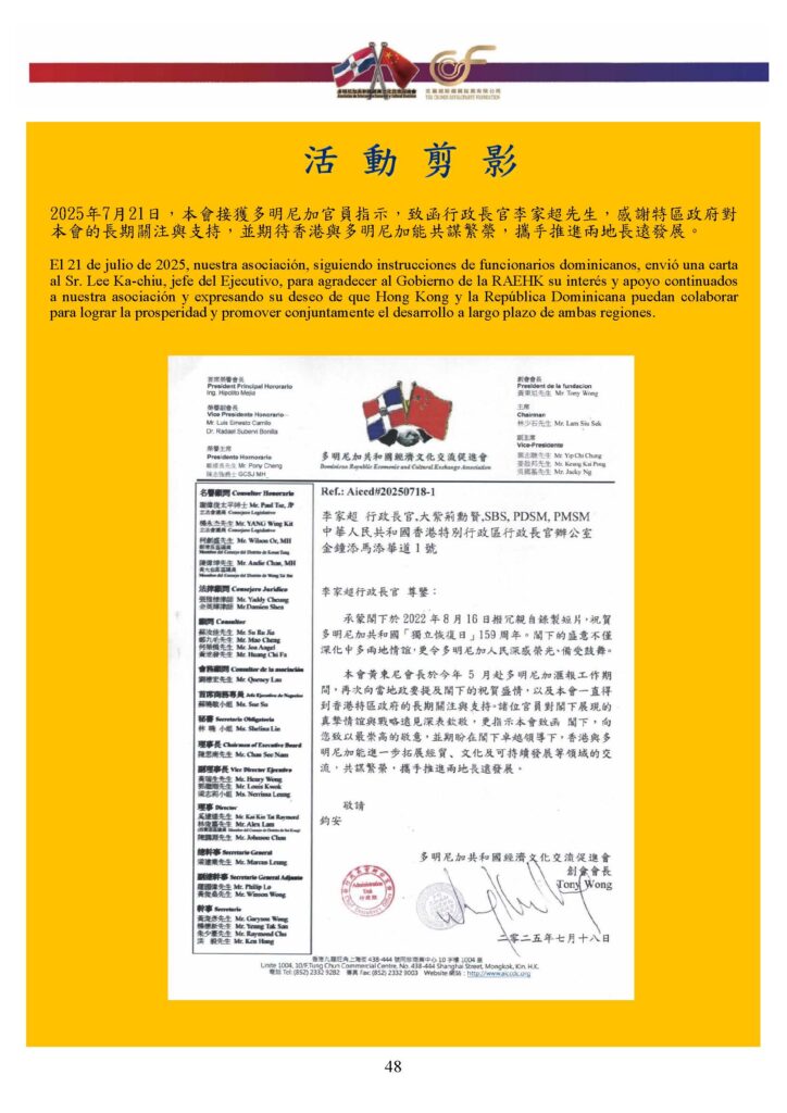 2025年7月,協會亦再次致函香港特區行政長官,感謝特區政府長期對協會工作的關注與支持,進一步展現出雙方持續保持良性互動。